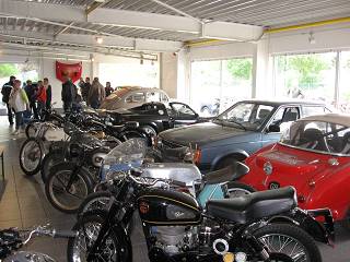womit nicht der Zustand der Fahrer, sondern die Lieblingsfarbe der Auspuffgase gemeint war (logisch: Zweitakt mit jeder Menge Öl...), dann die grünen und die roten. Leider war dieses Jahr nur ein Automobil dabei.