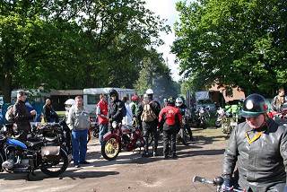 in 4 Gruppen, um der Auflage einer angemeldeten Fahrt zu entgehen. Jeder bekam ein Bändchen an den (nach STVZO erforderlichen) Rückspiegel und los ging es. Die ganz alten in einer Gruppe (gelb), die “Blauen”,