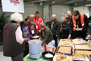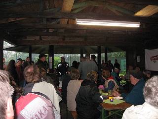 Organisationsteams war das Buffet eröffnet, die Spiele konnten beginnen... Auf Grund des kühlen, feuchten Wetters kuschelten wir uns alle in der Grillhütte zusammen, so konnte man es aushalten. Jeder hoffte