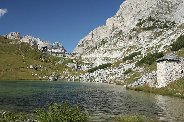 Oben angekommen ist es nur noch ein Katzensprung zum Paso Valparola. Auf dem Weg dort hin fährt man an einem Dokumentationszentrum für die Kampfhandlungen vorbei,